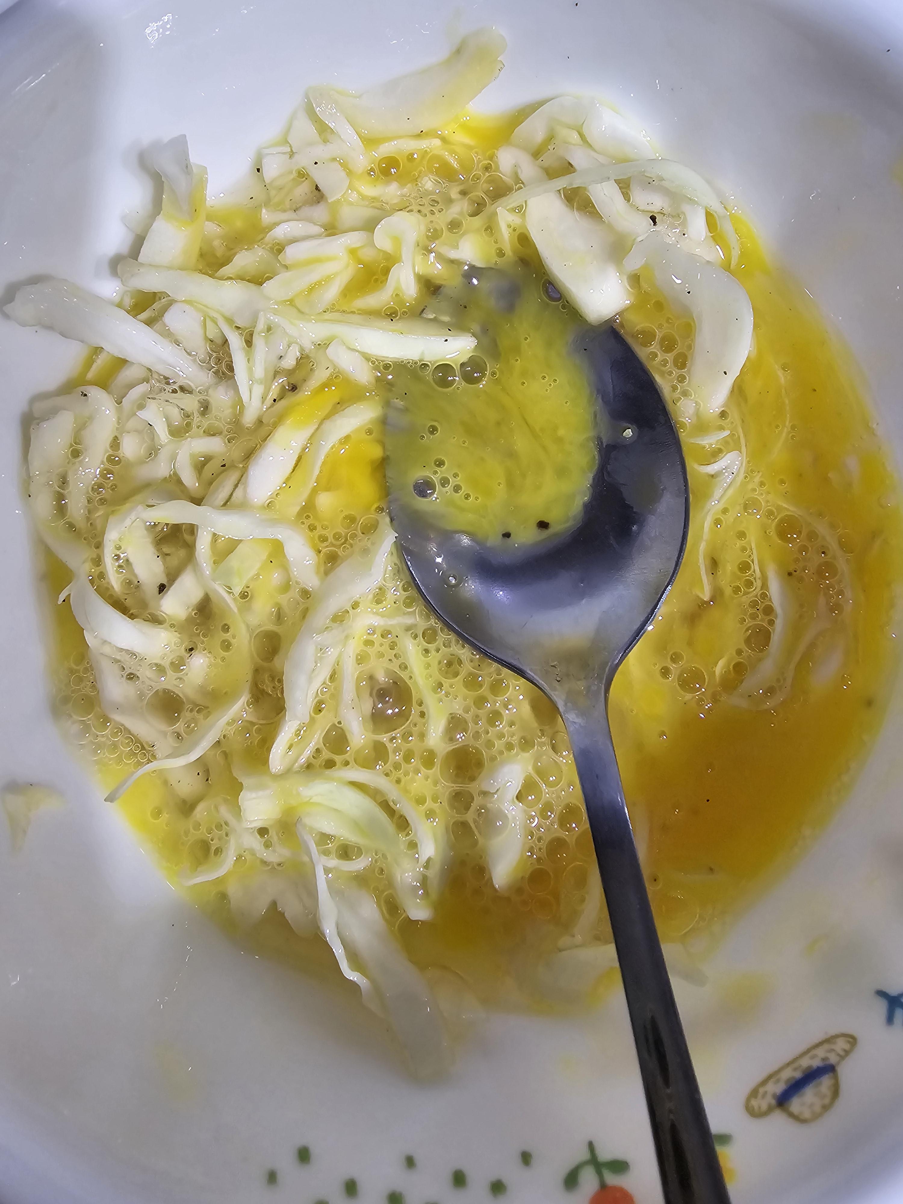 달군 후라이팬에 계란양배추전을 부쳐주세요